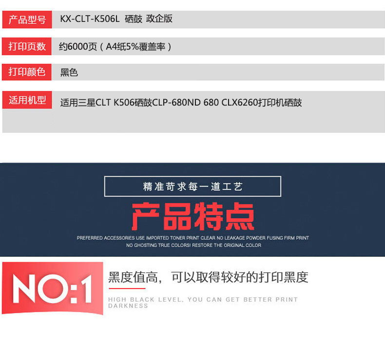 凱欣KX-CLT-K506L 適用三星CLT K506硒鼓CLP-680ND 680 CLX6260打印機(jī)硒鼓 全國(guó)統(tǒng)一價(jià):275元